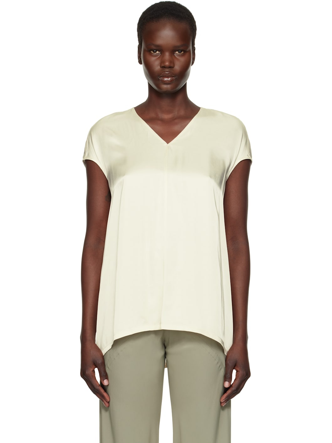 FSC-certified viscose- and acetate-blend charmeuse T-shirt. · V-neck · Central seam at front and back · Cap sleeves · Darts at back collar Supplier color: Dinge 61% acetate, 39% viscose. Made in Italy 251232F110009