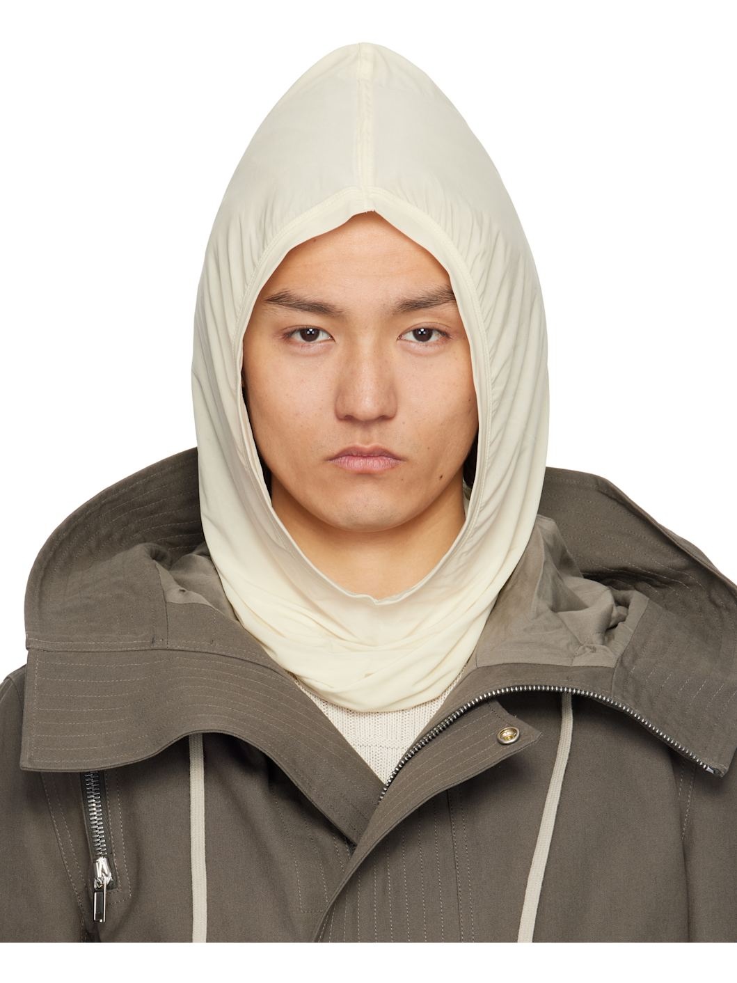 Semi-sheer stretch cupro jersey hood in off-white. · Lightweight · Rib-knit edge at face and collar · Fully lined Supplier color: Dinge 92% cupro, 8% elastane. Made in Italy 251232M138023