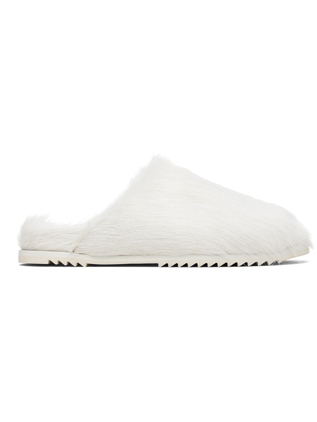 Hair-on leather slip-on sandals. · Open toe · Treaded rubber sole Supplier color: Milk Upper: leather. Sole: rubber. Made in Italy 252232F121004