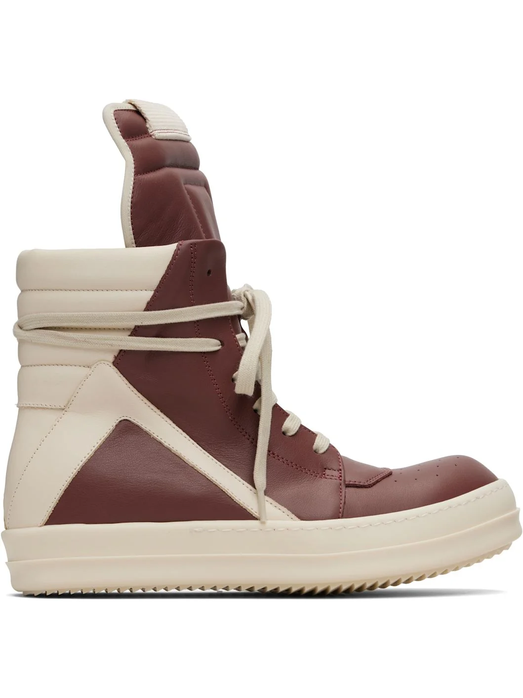 High-top LWG-certified buffed leather sneakers. · Perforated detailing at toe · Lace-up closure · Pull-loop at extended padded tongue · Padded collar · Zip closure at inner side · Buffed calfskin lining · Treaded rubber sole Supplier color: Dark pink/Milk/Milk Upper: leather. Sole: rubber. Made in Italy 252232M236067
