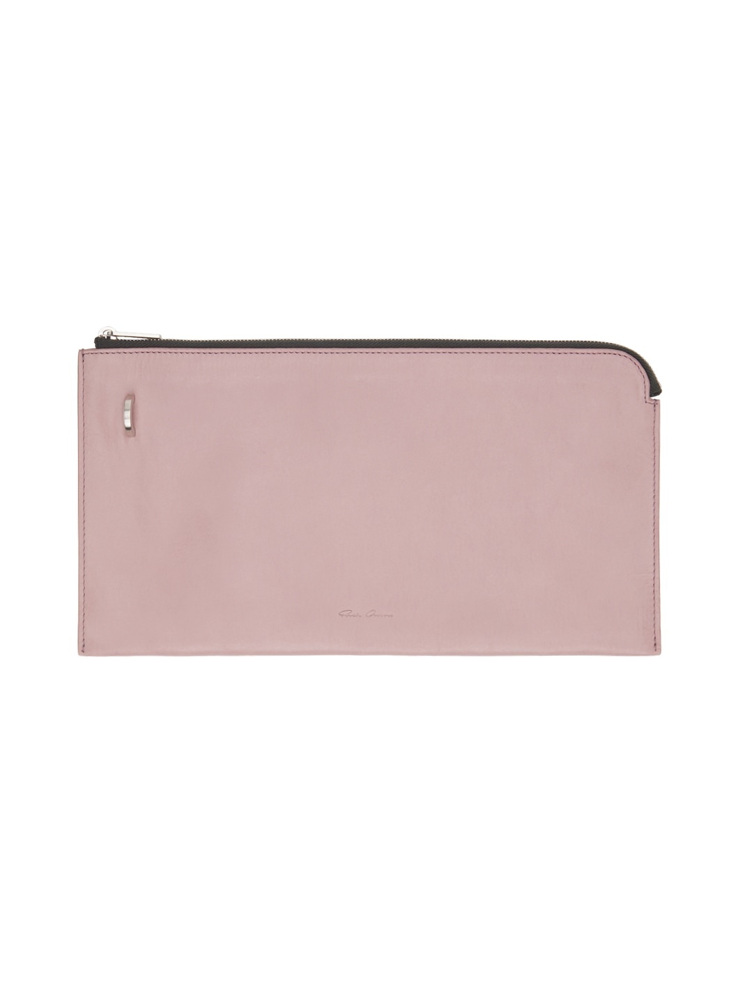 Lightweight vegetable-tanned grained calfskin wallet in pink. · D-ring and logo embossed at face · Zip closure · Unlined · H6.75" x W12.5" Supplier color: Dusty pink Leather. Made in Italy 241232M164000