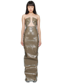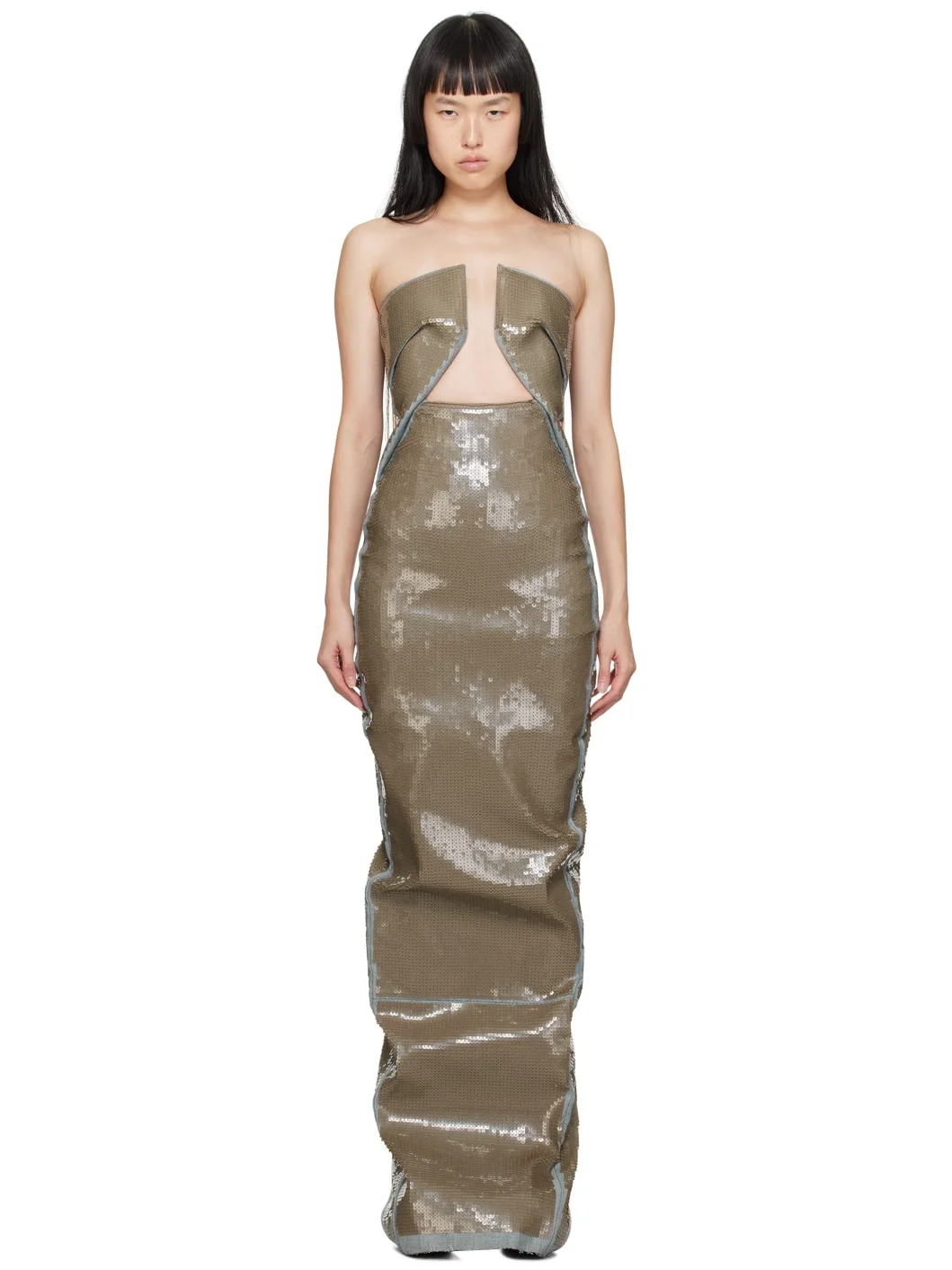 Sequinned lightweight stretch denim dress. · Cutout and boning at straight neck · Darts at chest · Zip closure at back · Central vent at back hem · Partial stretch cotton canvas lining Supplier color: Blue/Dust