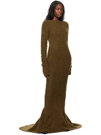 Knit stretch alpaca-blend maxi dress. · Rolled edge at boat neck · Godet panel at extended fishtail hem · Cutout at back · Unlined Supplier color: Honey 48% alpaca, 30% nylon, 20% wool, 2% elastane. Made in Italy 242232F055040