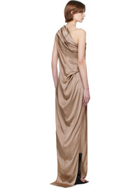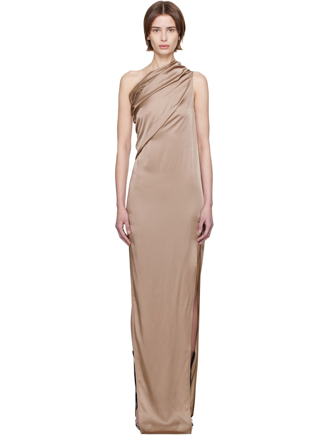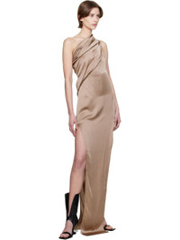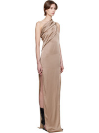 Lightweight acetate- and viscose-blend charmeuse maxi dress. · Single-shoulder construction · Draping at asymmetric neck · Raw edges at hem · Slit at sides · Central garter-stitch stripe back Supplier color: Flesh 61% acetate, 39% viscose. Made in Italy 251232F055001
