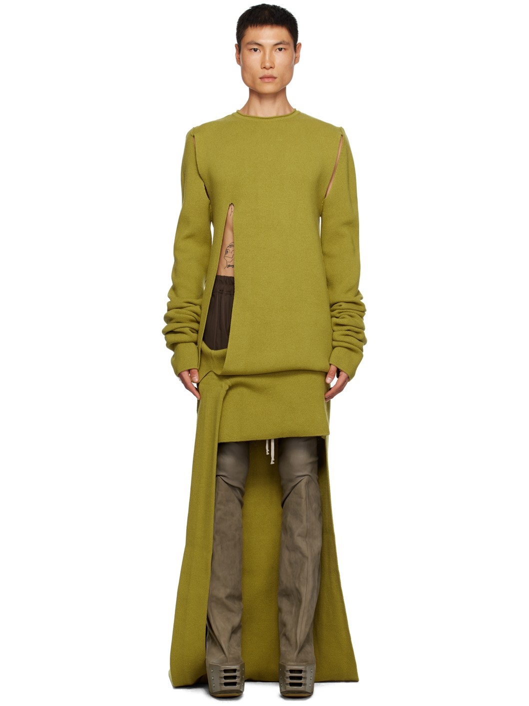 Rib knit recycled cashmere- and wool-blend sweater. Cutouts throughout. · Layered construction · Rolled edge at crewneck · Extended trim at asymmetric hem Supplier color: Acid 97% recycled cashmere, 3% wool. Made in Italy 232232M201059