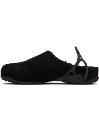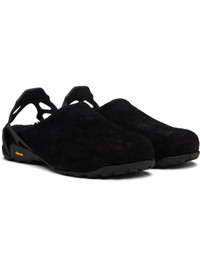 Handcrafted waxed calfskin suede slip-on loafers. · Water-repellent · Logo-embossed slingback strap · Sherpa fleece lining · Treaded Vibram® Megagrip rubber sole Supplier color: Black sherpa Upper: calfskin. Sole: rubber. Made in Albania 252204M234001
