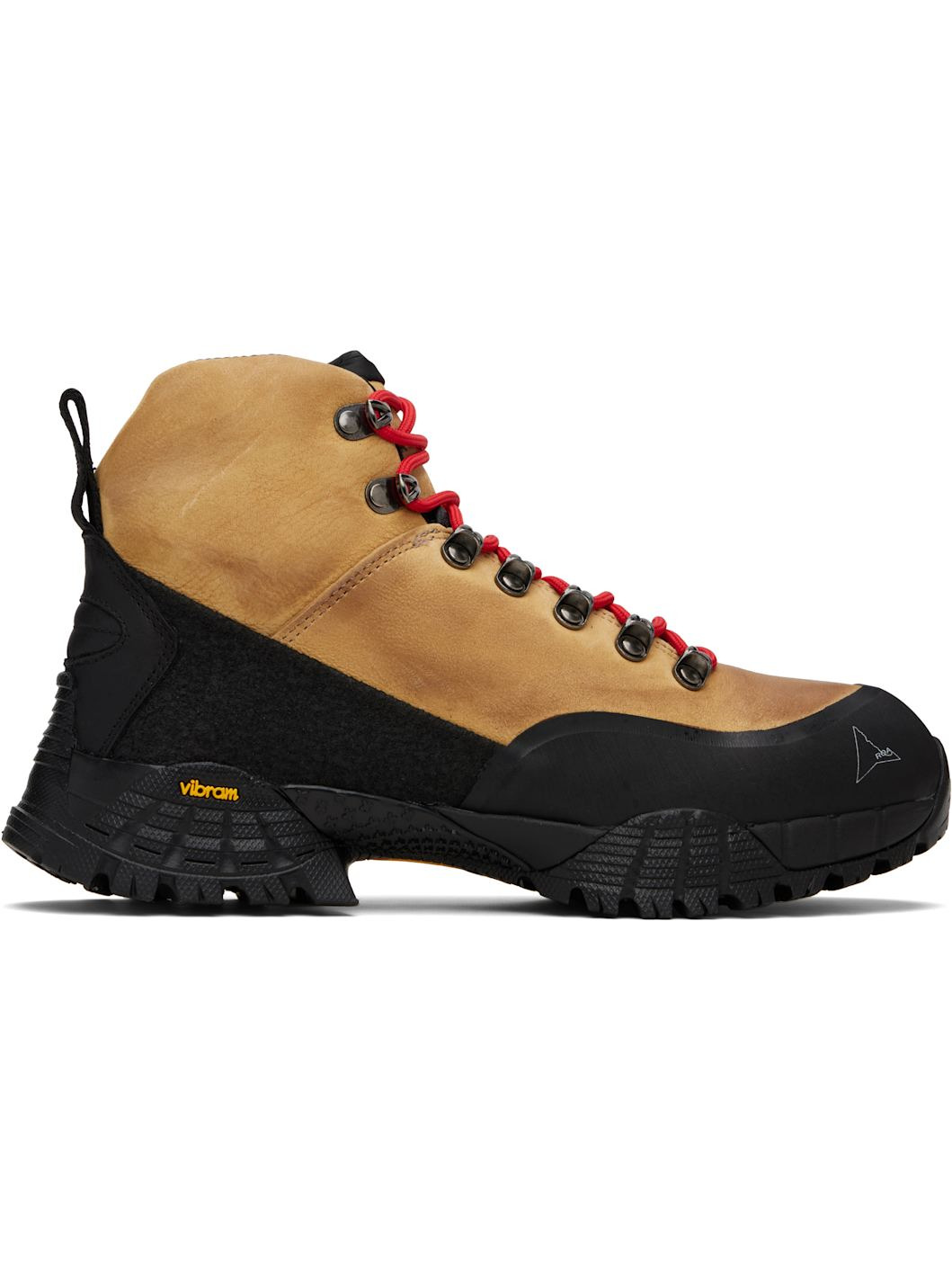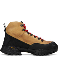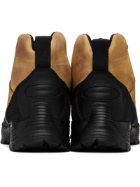 Ankle-high water-repellent kudu leather nubuck boots. · LWG-certified leather · Logo printed at rubber cap toe · Lace-up closure · Logo embroidered at tongue and inner side · Padded tongue and collar · Pull-loop at heel tab · Jersey lining · Treaded Vibram® Megagrip rubber sole · Includes alternate laces Supplier color: Honey Upper: kudu leather. Sole: rubber. Made in Italy 252204M255004