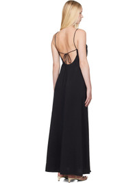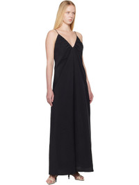 Black Hammered Silk V-Neck Strap Maxi Dress