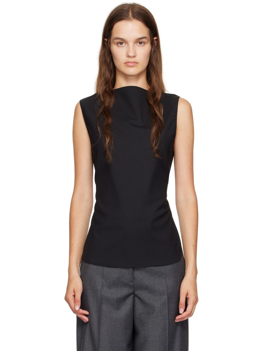 Plain-woven virgin wool tank top. · Cowl neck · Curved hem · Adjustable halter strap · Self-tie strap at open back Supplier color: Black 100% virgin wool. Made in Bulgaria 242144F111018
