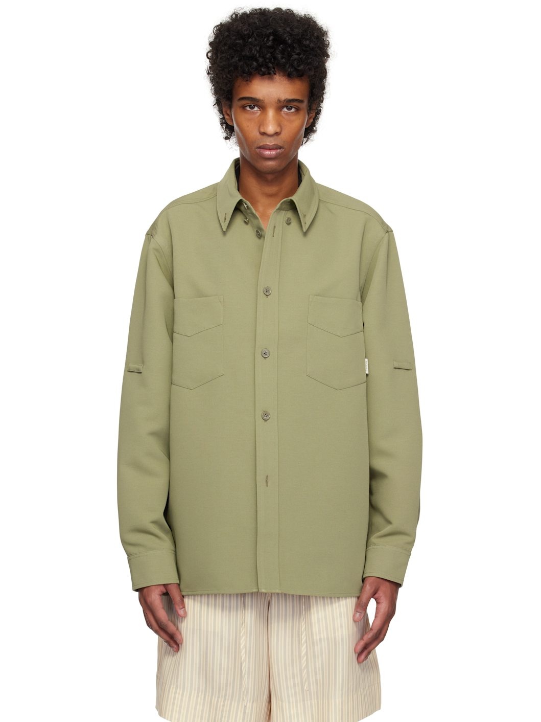 Loose-fit recycled polyester twill shirt. · Spread collar · Button closure · Patch pockets · Logo flag at chest · Vented side seams · Loop at sleeves · Pleats at single-button barrel cuffs Supplier color: Sage 100% recycled polyester. Made in Portugal 251144M192008