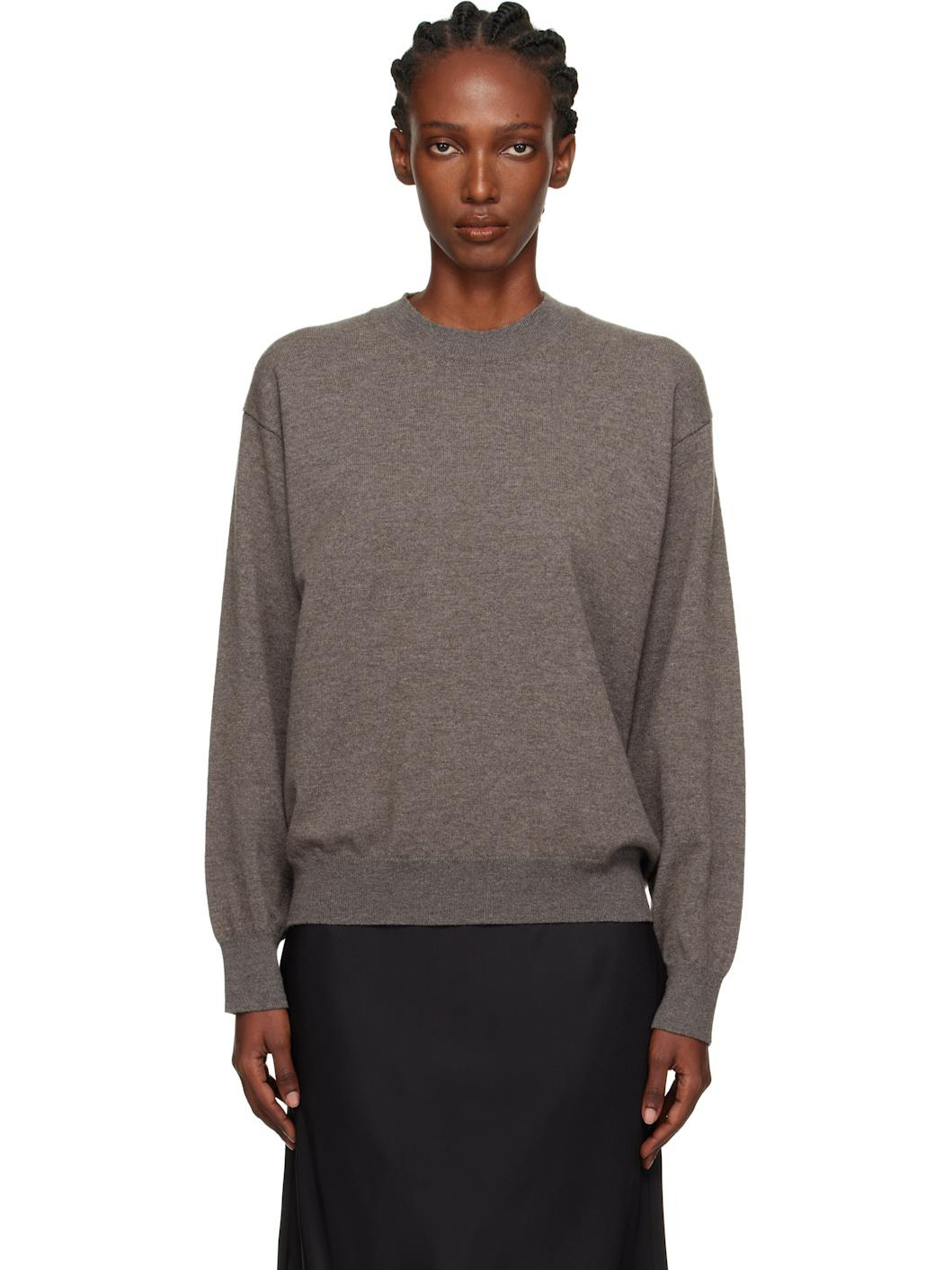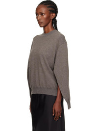 Knit stretch merino wool- and cashmere-blend sweater. · Rib-knit crewneck, hem, and cuffs · Cutout at armscyes for alternate styling · Dropped shoulders Supplier color: Mud melange 87% merino wool, 10% cashmere, 3% elastane. Made in Italy 252144F096008