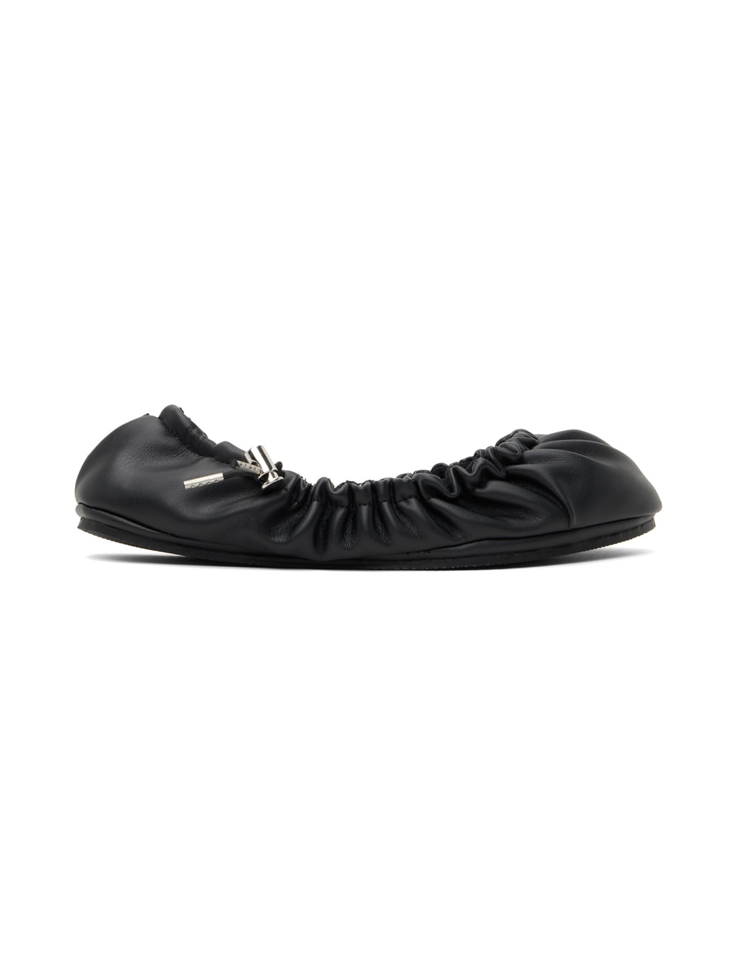 Handcrafted grained faux-leather ballerina flats in black. · Bungee-style drawstring at collar · Logo flag at heel · Mesh lining · Treaded TPU sole Supplier color: Black beyond leather Upper: synthetic. Sole: thermoplastic polyurethane. Made in Portugal 241654F118007