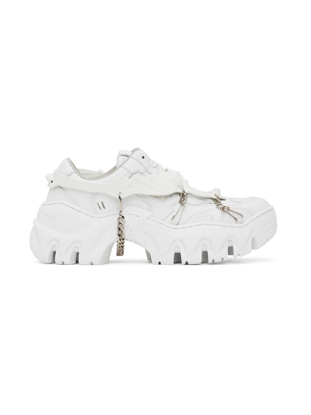 Handcrafted low-top buffed faux-leather sneakers in white. Detachable rubber and curb chain harness-style overlay. · Lace-up closure · Logo flag at padded tongue · Padded collar · Rubberized logo patch at outer side · Buffed faux-leather lining · Logo embossed at heel counter · Treaded rubber platform sole · Platform: H1.5" Supplier color: White future leather Upper: synthetic. Sole: rubber. Made in Portugal 241654F128012