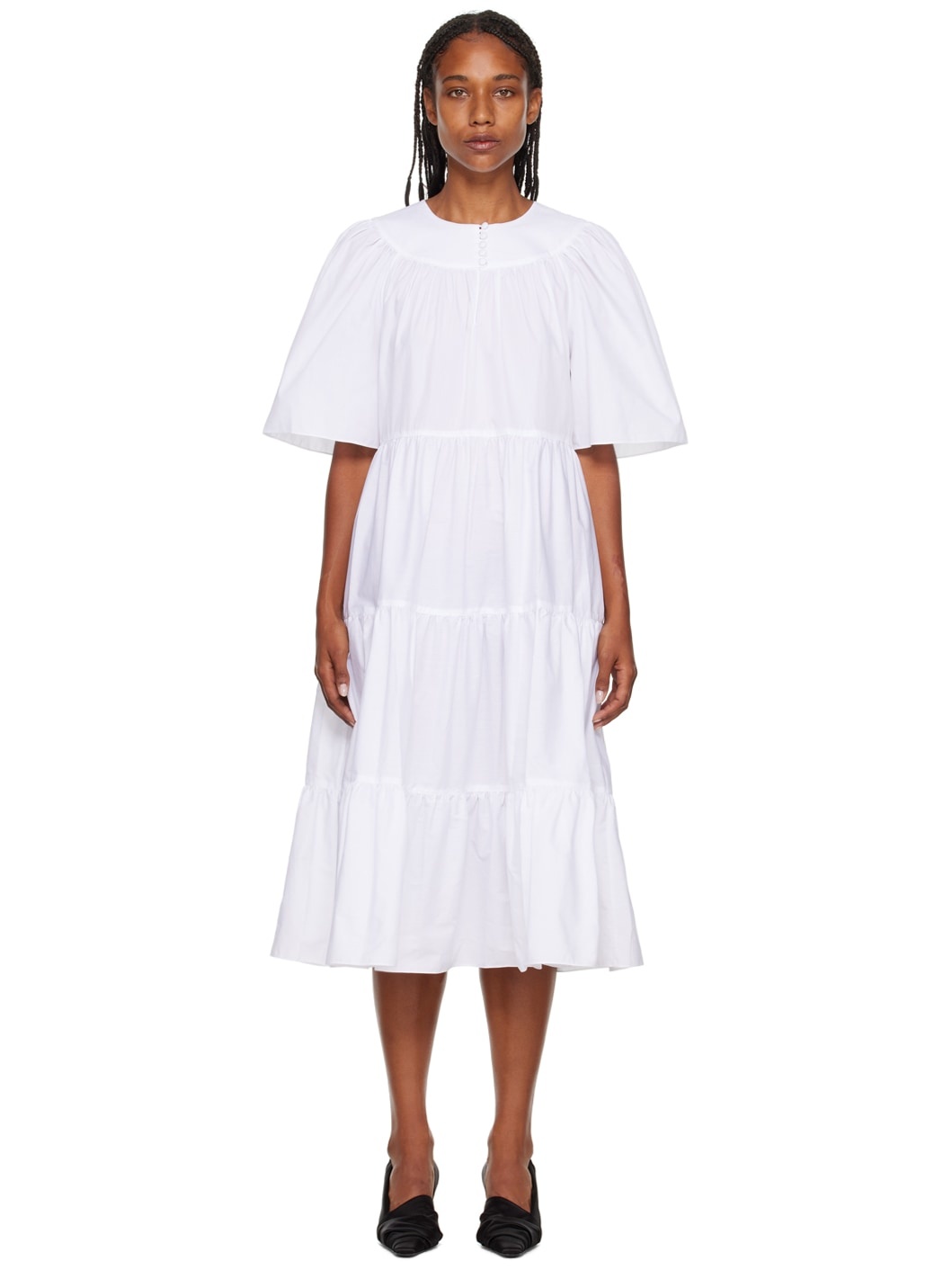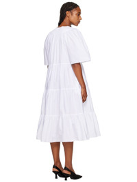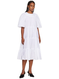 BCI and GOTS-certified organic cotton poplin dress. · Tiered construction · Crewneck · Five-button placket · Cutout at chest · Welt pockets · Raglan sleeves Supplier color: White 100% organic cotton. Made in United States 222700F055001