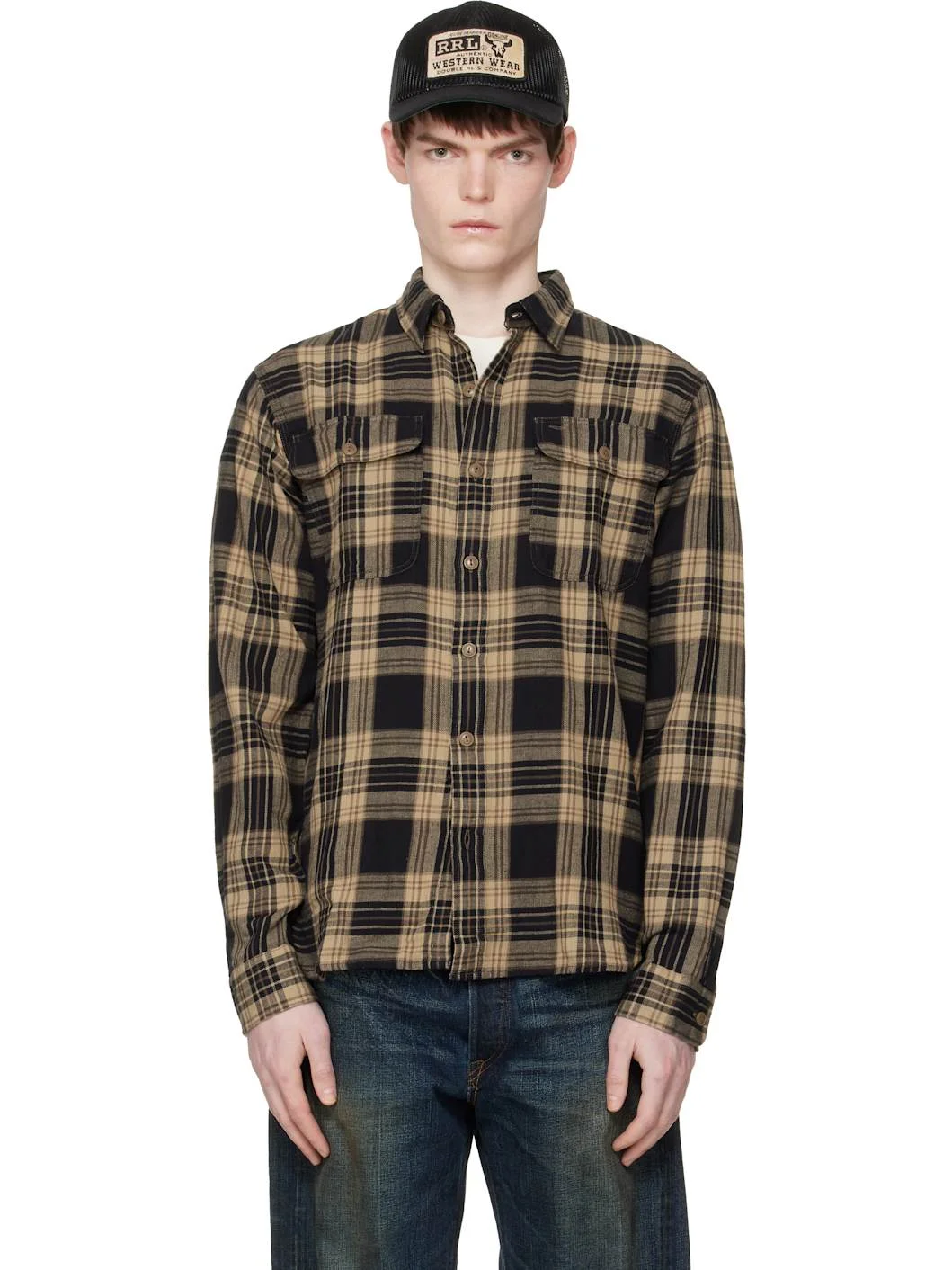 Cotton- and linen-blend flannel shirt. · Check pattern throughout · Spread collar · Button closure · Flap pockets at chest · Shirttail hem · Buttoned barrel cuffs Supplier color: Black/Brown 89% cotton, 11% linen. Made in India 261435M192019