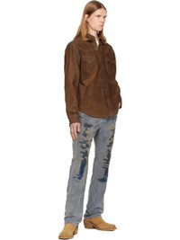 Cotton corduroy trousers. · Fading and distressing throughout · Mid-rise · Belt loops · Five-pocket styling · Button fly · Patch pocket at outseam · Logo patch at back waistband · Logo-engraved silver-tone hardware Supplier color: Faded blue 100% cotton. Made in Mexico 252435M191004