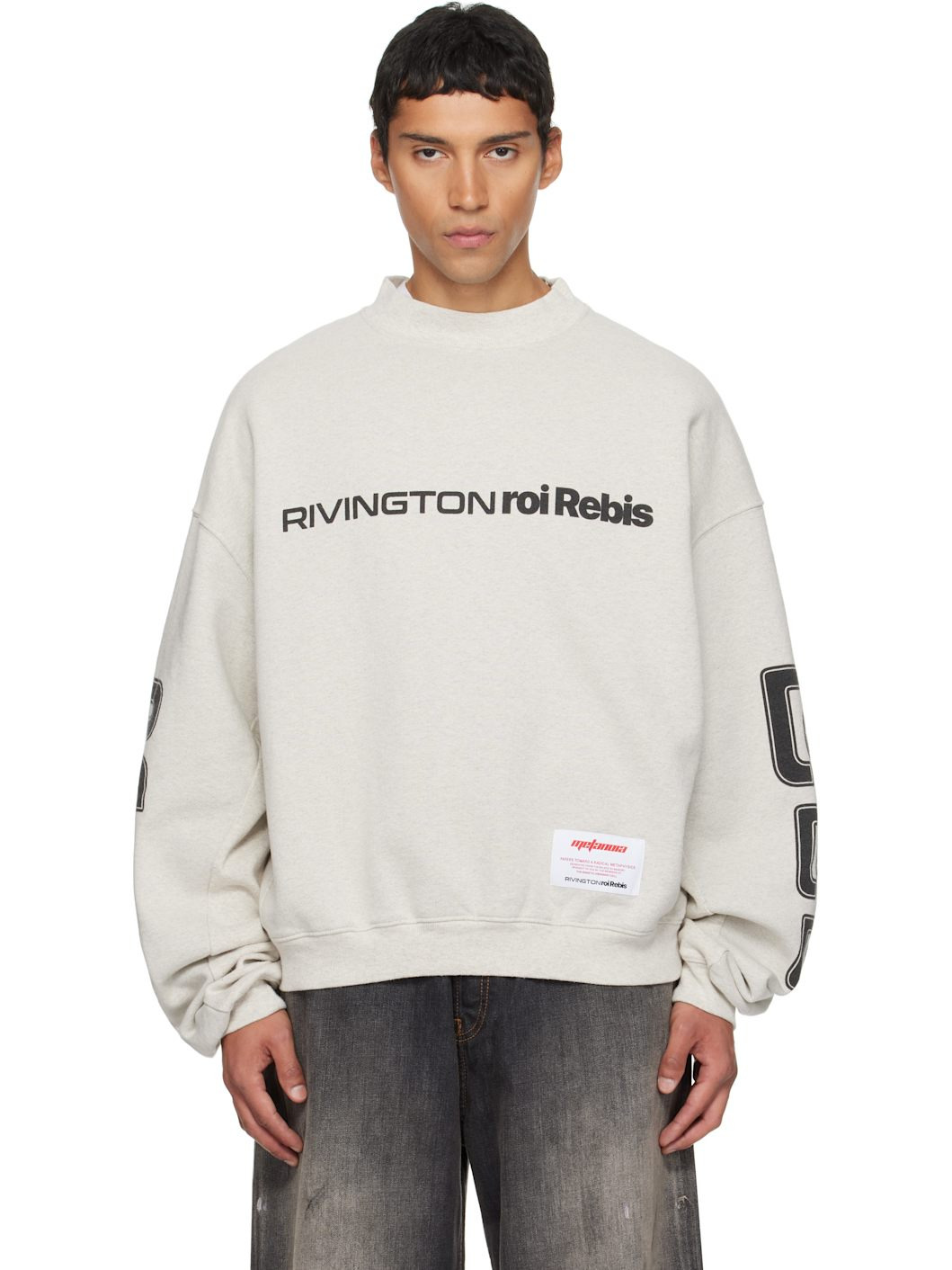 Handcrafted brushed cotton French terry sweatshirt. · Rib-knit crewneck, hem, and cuffs · Logo printed at chest and sleeves · Logo patch at front hem · Dropped shoulders · Text printed at back Supplier color: Heather grey Body: 100% cotton. Trim: 94% cotton, 6% spandex. Made in United States 252268M204008