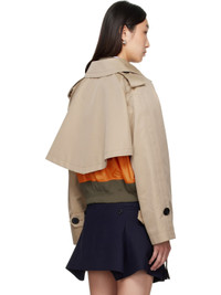 Cotton-blend gabardine jacket. · Spread collar · Two-way zip closure · Double-breasted button placket · Storm flap at front and back · Concealed welt pockets · Rib-knit cropped hem · Epaulets · Raglan sleeves · Adjustable button tab at cuffs · Nylon twill underlay Supplier color: Beige Body: 63% cotton, 37% polyester. Body 2: 100% nylon. Trim 1: 55% polyester, 44% cotton, 1% polyurethane. Trim 2: 100% cupro. Fill: 100% polyester. Made in Japan 252445F063000