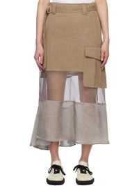Non-stretch denim and sheer polyester chiffon maxi skirt. · Paneled asymmetric construction · Belt loops and detachable cinch belt · Zip closure at side seam · Flap pocket at side and back · Partial cupro satin lining Supplier color: Beige Body 1: 100% cotton. Body 2: 100% polyester. Lining: 100% cupro. Made in Japan 251445F055001
