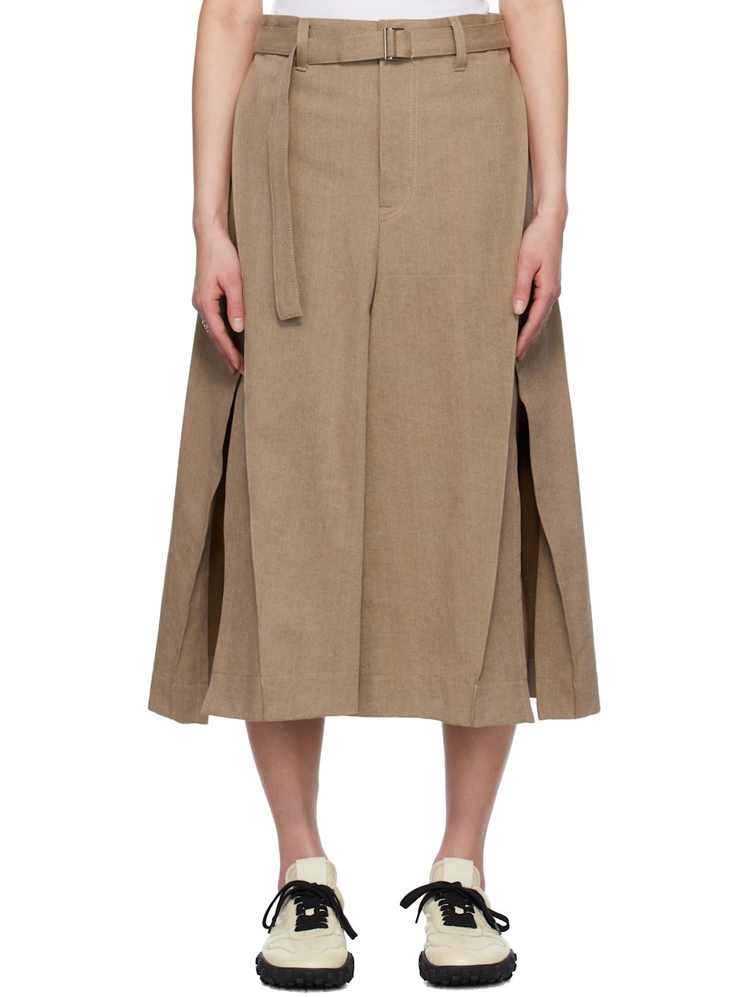 Non-stretch denim midi skirt. Pleats throughout. · Belt loops and detachable cinch belt · Four-pocket styling · Zip fly · Slits at hem · Partial twill lining Supplier color: Beige Body: 100% cotton. Lining: 100% cotton. Made in Japan 251445F092008