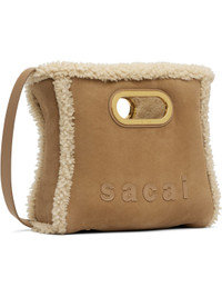 Shearling shoulder bag. · Integrated carry handles · Adjustable and detachable shoulder strap · Logo appliques at face and back · Bumper studs at base · Open throat · Card slot at interior · H8.5" x W9.5" x D3" Supplier color: Camel 100% lambskin. Made in Italy 252445F048000