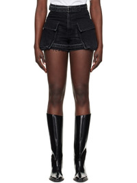 Non-stretch denim shorts. Fading throughout. · Belt loops · Detachable cinch belt · Two-pocket styling · Zip fly · Bellows pocket at legs · Raw edge at cuffs · Darts at back Supplier color: Black 100% cotton. Made in Japan 251445F088000