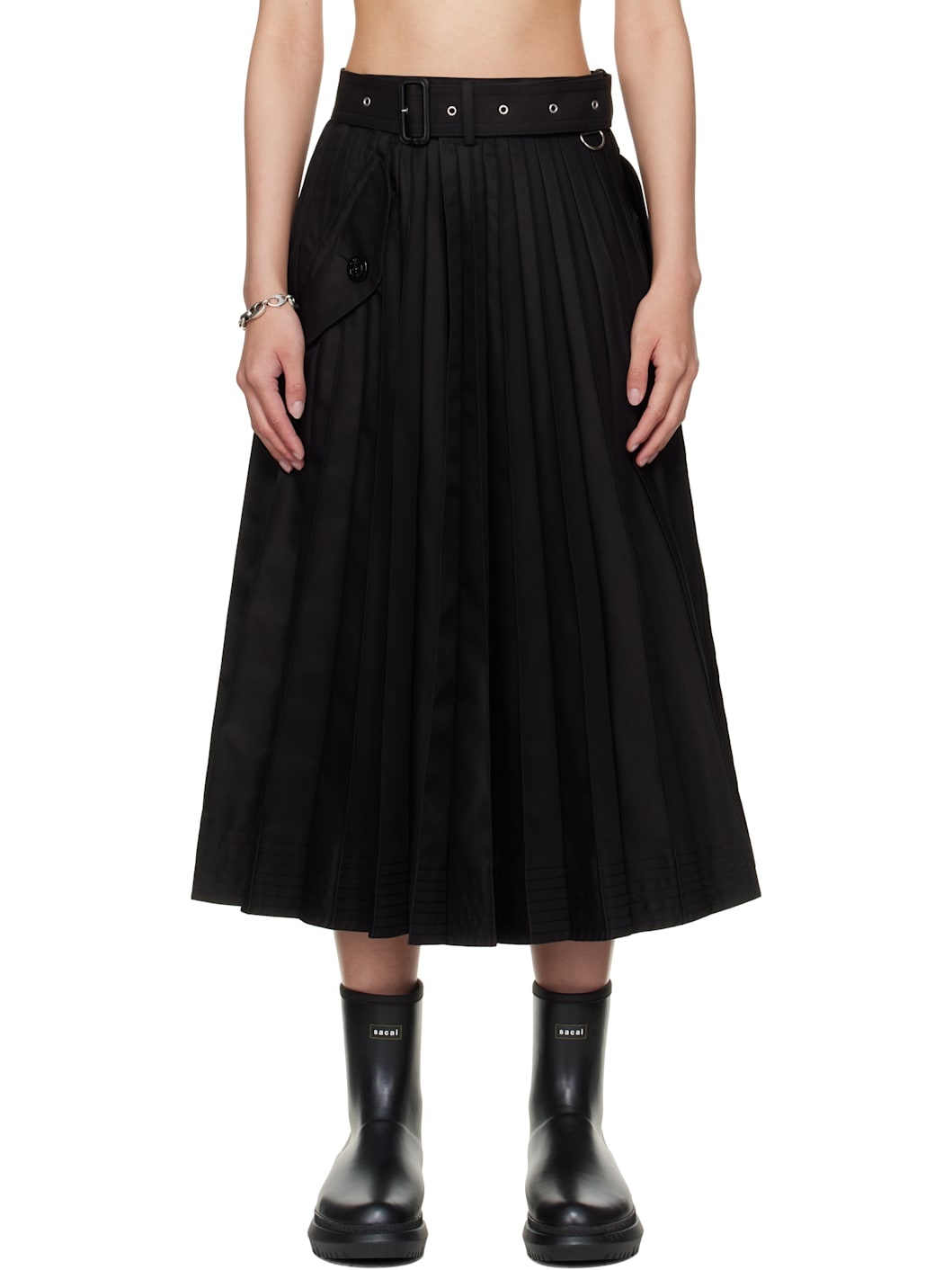 Garment-pleated cotton-blend gabardine midi skirt. · Wrap construction · Belt loops, integrated cinch belt, and D-ring at waistband · Two-pocket styling Supplier color: Black 63% cotton, 37% polyester. Made in Japan 252445F092000