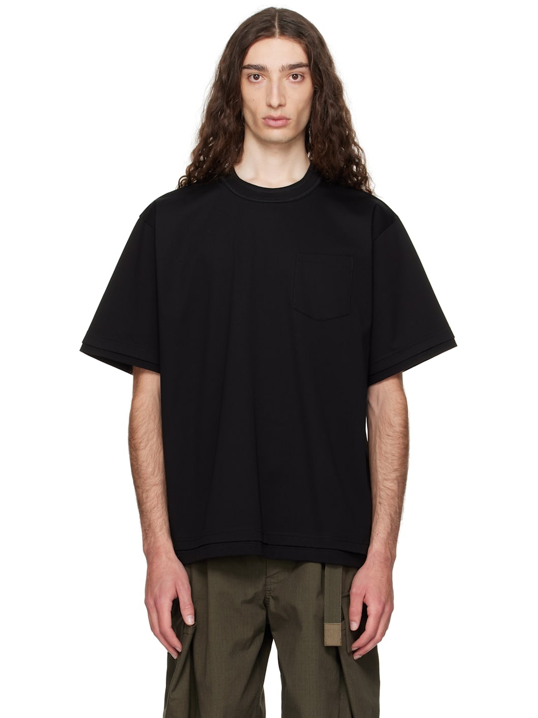 Cotton jersey T-shirt. · Layered rib-knit crewneck · Patch pocket at chest · Layered hem and cuffs Supplier color: Black 100% cotton. Made in Japan 252445M213036