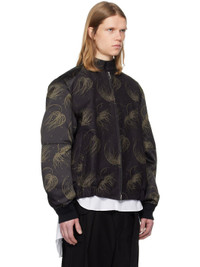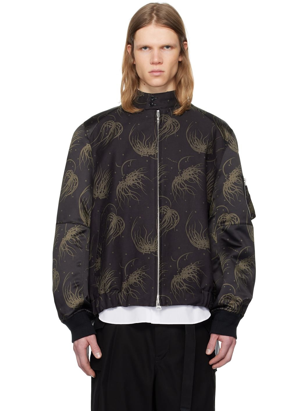 Plain-woven cotton bomber jacket. Floral and polka dot pattern printed throughout. · Button fastening at stand collar · Two-way zip closure · Welt pockets · Elasticized hem · Saddle shoulders · Zip pocket and pen slots at sleeve · Darts at sleeves · Rib-knit cuffs · Storm flap at back · Full cupro satin lining Supplier color: Black Body: 100% cotton. Trim 1: 100% polyester. Trim 2: 55% polyester, 44% cotton, 1% polyurethane. Lining: 100% cupro. Made in Japan 251445M175013
