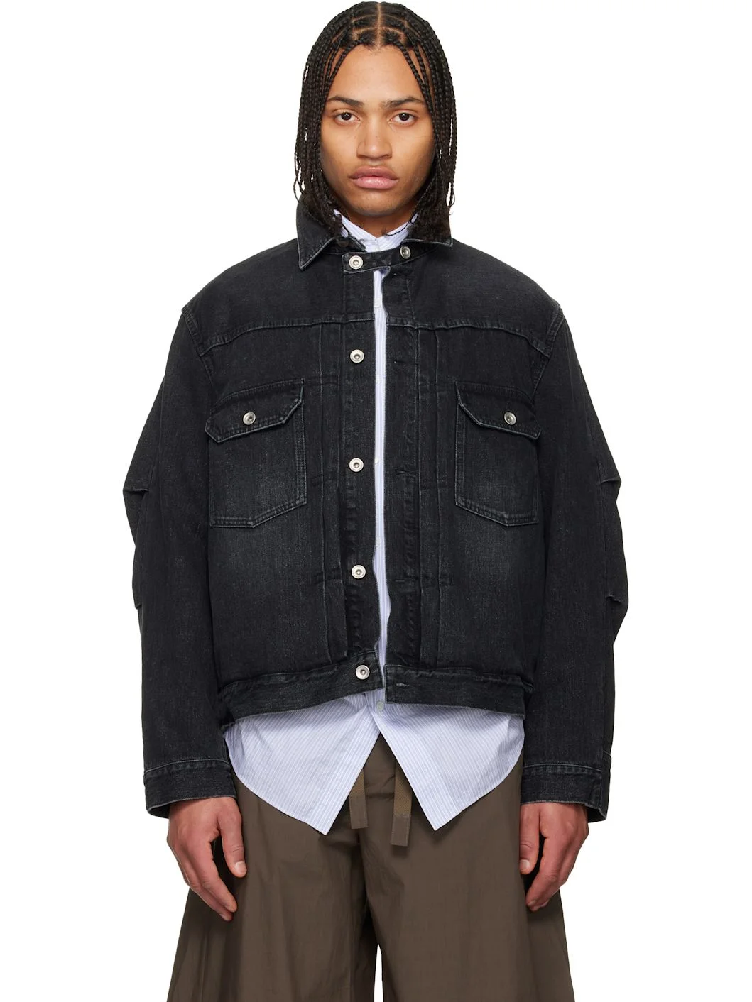 Non-stretch denim jacket. · Fading throughout · Button throat guard at spread collar · Button closure · Flap pockets at chest · Seam pockets · Adjustable press-stud barrel cuffs Supplier color: Black 100% cotton. Made in Japan 261445M177008