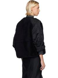Insulated wool-blend fleece and nylon twill jacket. · Grosgrain trim throughout · Round neck · Concealed two-way zip closure with press-stud placket · Welt pockets at chest · Flap pockets at waist · Utility pocket and pen slots at sleeve · Press-stud tab at cuffs · Full twill lining Supplier color: Black Body: 50% wool, 28% acrylic, 22% polyester. Trim 1: 100% nylon. Trim 2: 100% wool. Fill: 100% polyester. Lining: 100% polyester. Made in Japan 252445F063015