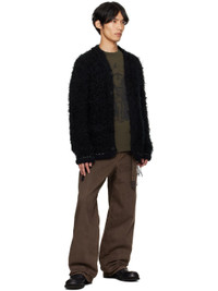 Shag-knit cardigan. · Rib-knit Y-neck, hem, and cuffs · Button closure · Welt pockets at front · Extended trim at hem and cuffs Supplier color: Black Body: 76% polyester, 24% nylon. Trim: 85% cotton, 14% polyester, 1% polyurethane. Made in Japan 252445M200004