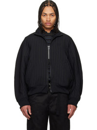 Plain-woven wool-blend jacket. · Pinstripes throughout · Stand collar · Two-way zip closure · Welt pockets at front · Rib-knit hem and cuffs · Raglan sleeves Supplier color: Black Body: 99% polyester, 1% rayon. Trim: 100% polyester. Made in Japan 261445M180012
