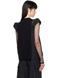 Knit cotton and polyester-blend poplin sweater. · Paneled construction · Rib-knit trim at crewneck and hem · Tulle trim at structured cap sleeves Supplier color: Black Body 1: 100% cotton. Body 2: 65% polyester, 35% cotton. Trim: 100% polyester. Made in Japan 251445F096013