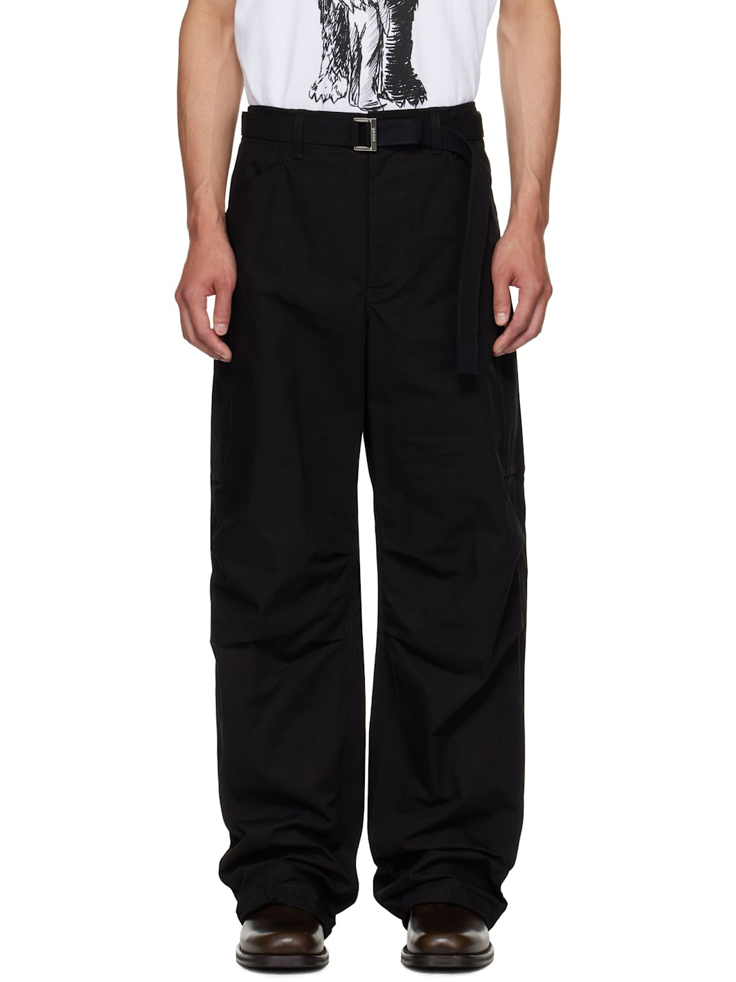 Cotton- and nylon-blend ripstop cargo pants. · Belt loops · Detachable logo-engraved cinch belt · Four-pocket styling · Zip fly · Tucks at knees · Self-tie drawstring at cuffs · Cargo pocket at outseams · Cinch tabs at back waistband · Extended trims at back legs Supplier color: Black 53% cotton, 47% nylon. Made in Japan 252445M188004
