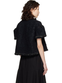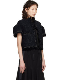 Cotton-blend tweed jacket. · Frayed edges throughout · Round neck · Hook-eye closure · Patch pockets at front · Pleated canvas panel at shoulders · Full cupro satin lining Supplier color: Black Body: 67% nylon, 33% cotton. Trim 1: 60% acrylic, 34% wool, 5% nylon, 1% polyester. Trim 2: 100% cotton. Lining: 100% cupro. Made in Japan 261445F063003