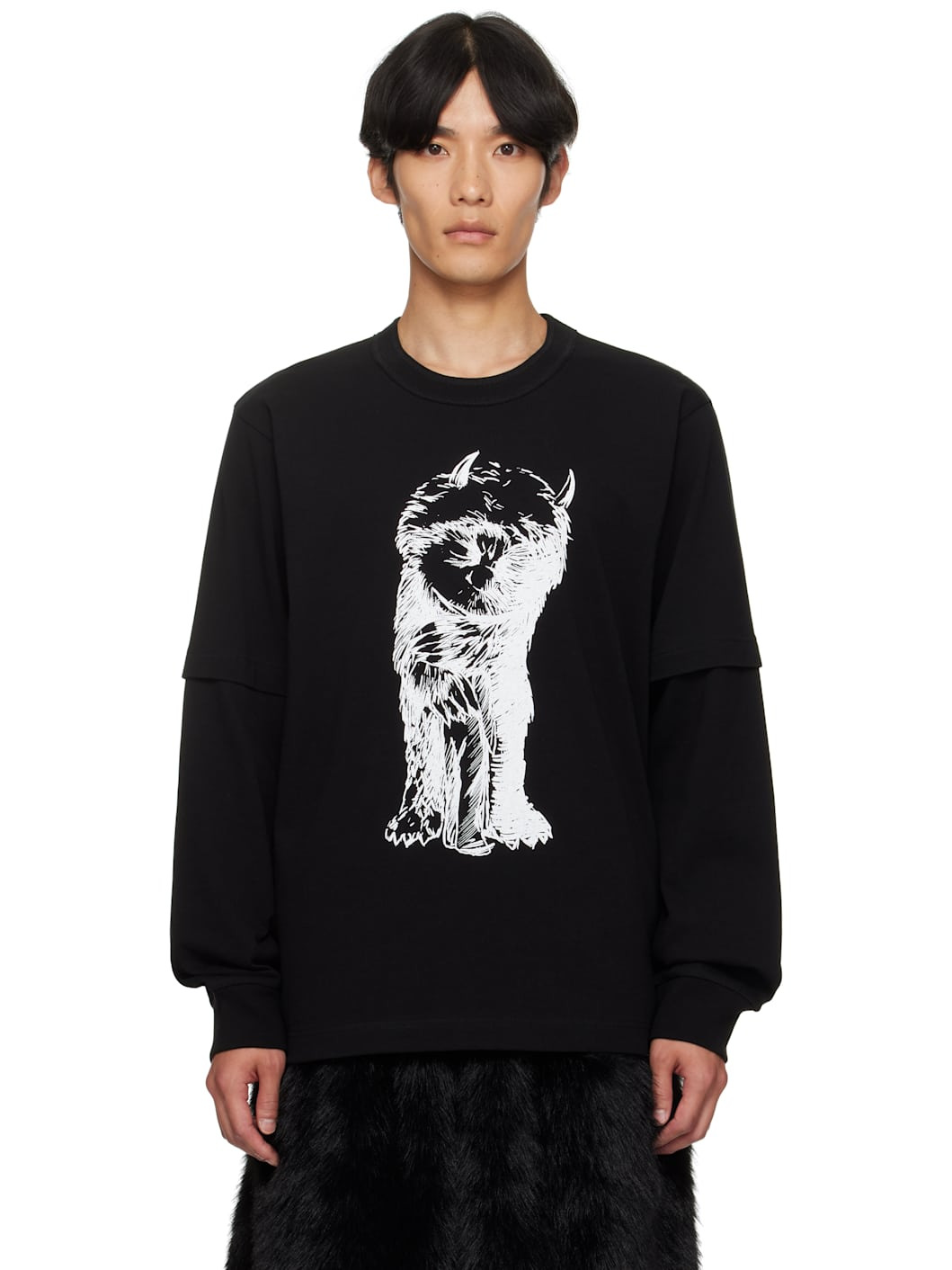 Cotton jersey T-shirt. · Rib-knit crewneck and cuffs · Graphic printed at front · Layered sleeves · Logo and text printed at back Part of the Where The Wild Things Are capsule. Supplier color: Black Body: 100% cotton. Trim: 100% rayon. Made in Japan 252445M213031