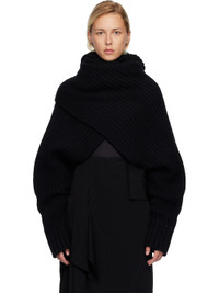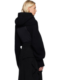 Rib-knit bolero-style turtleneck. · Converts to wrap sweater · Integrated hood · Extended sleeves Supplier color: Black 80% wool, 20% nylon. Made in Japan 252445F099000