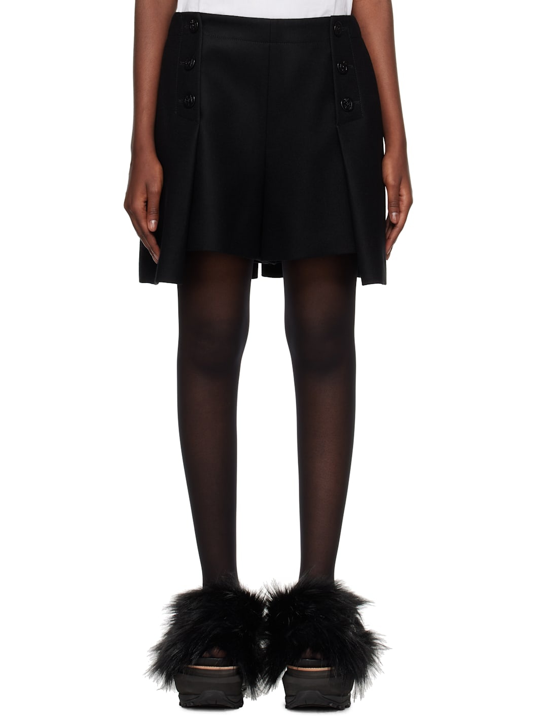 Wool melton shorts. · Two-pocket styling · Pleats with button fastening at front · Full cupro satin lining Supplier color: Black Body: 100% wool. Lining: 100% cupro. Made in Japan 242445F088004