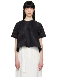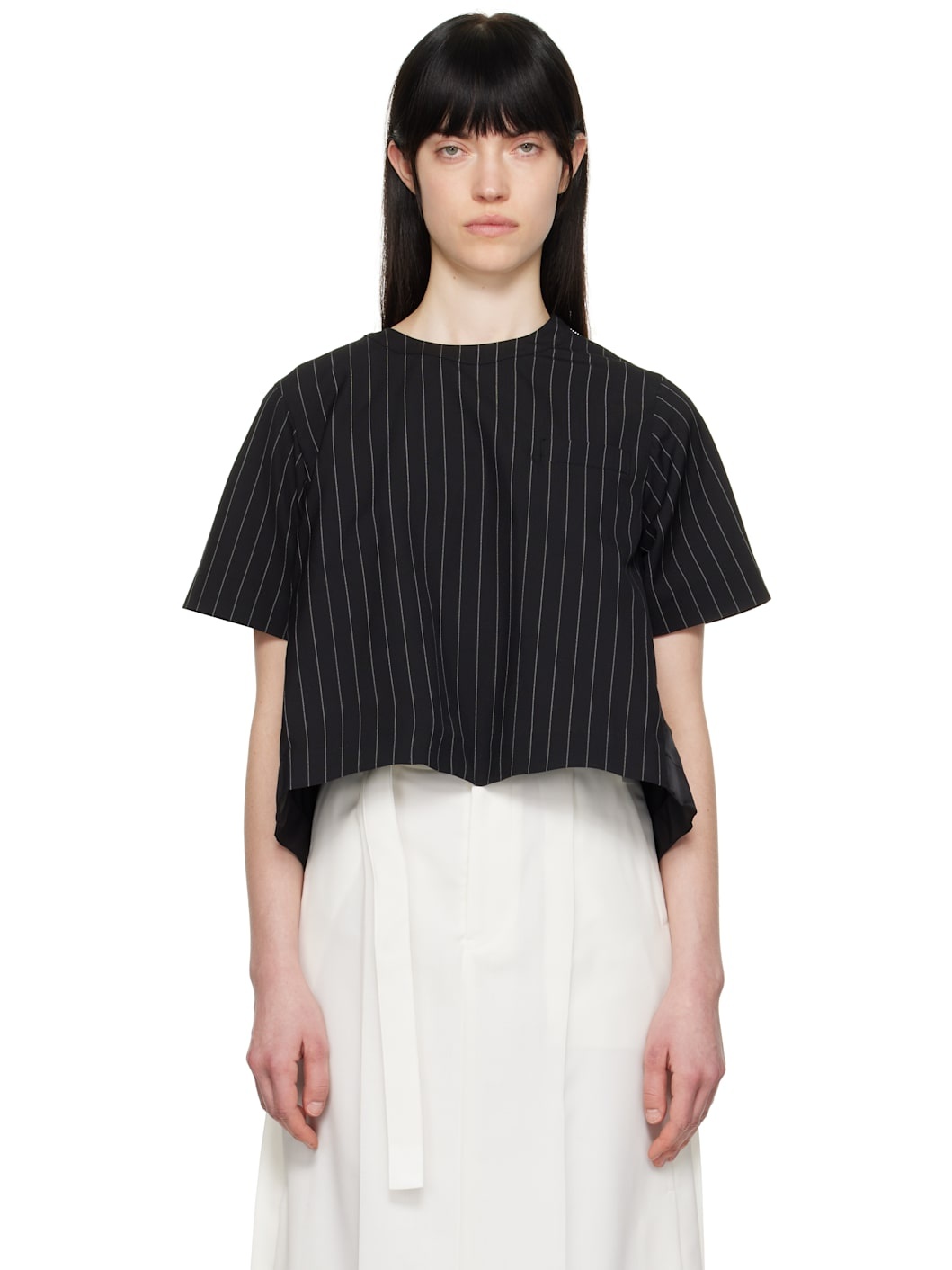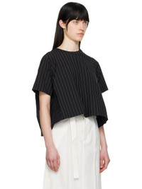 Plain-woven wool- and silk-blend and nylon twill T-shirt. Pinstripes throughout. · Paneled construction · Crewneck · Welt pocket at chest · Twin pleats and inverted box pleat at back yoke Supplier color: Black stripe Body 1: 72% wool, 28% silk. Body 2: 100% nylon. Lining: 100% cupro. Made in Japan 251445F110018