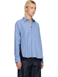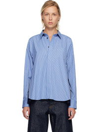 Cotton poplin shirt. · Striped throughout · Spread collar · Button closure · Patch pocket at chest · Shirttail hem · Zip expansion panel with pleated chiffon underlay at side seams · Pleats at buttoned barrel cuffs · Box pleat at back yoke Supplier color: Blue stripe Body 1: 100% cotton. Body 2: 100% polyester. Made in Japan 252445F109008