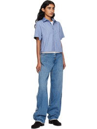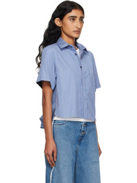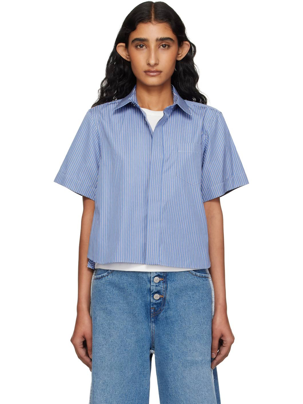 Cotton poplin shirt. · Stripes throughout · Spread collar · Concealed button closure · Patch pocket at chest · Cropped hem at front · Twin pleats and box pleat at back yoke · Peplum hem at back Supplier color: Blue stripe 100% cotton. Made in Japan 252445F109001