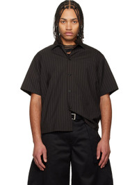 Lightweight wool-blend canvas shirt. · Semi-sheer · Stripes throughout · Spread collar · Button closure · Welt pocket at chest · Curved side seams · Logo-engraved hardware Supplier color: Brown Body: 70% polyester, 30% wool. Trim: 100% cupro. Made in Japan 261445M192010