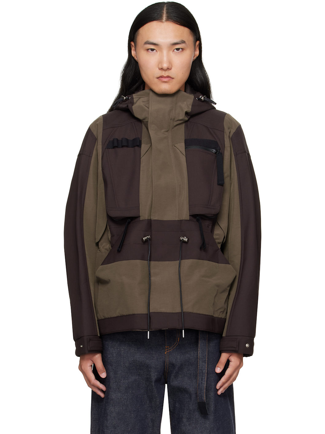 Wool-blend broadcloth and grosgrain jacket. · Paneled construction · Cord-lock drawstring at hood, waist, and hem · Concealed two-way zip closure and press-stud placket · Webbing daisy chain at chest · Zip pockets at chest · Welt pockets at waist · Elasticized cuffs · Full satin lining Supplier color: Brown Body 1: 70% polyester, 30% wool. Body 2: 100% polyester. Trim: 60% cotton, 40% nylon. Lining: 100% cupro. Made in Japan 252445M180007