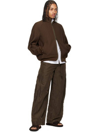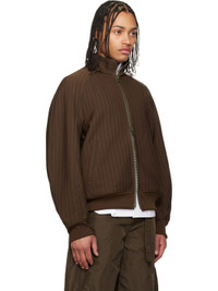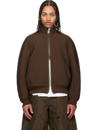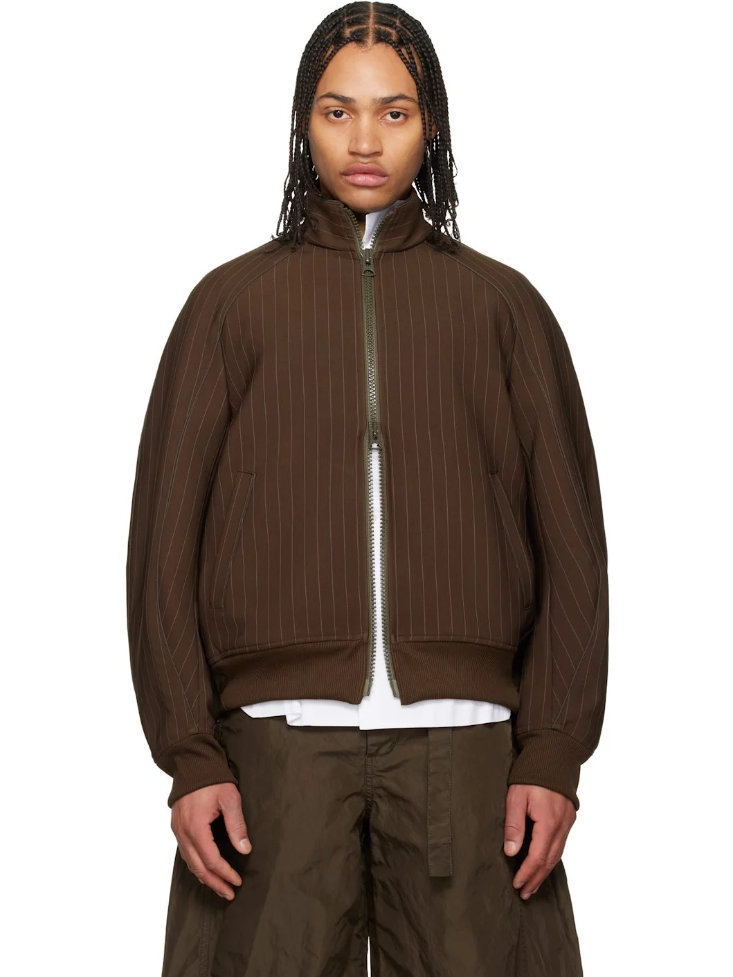 Twill jacket. · Pinstripes throughout · Funnel neck · Two-way zip closure · Welt pockets at waist · Rib-knit hem and cuffs · Piping at paneled raglan sleeves · Logo-engraved hardware Supplier color: Brown Stripe Body: 99% polyester, 1% rayon. Trim: 100% polyester. Made in Japan 261445M180011