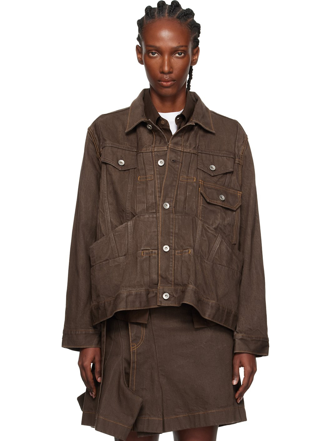 Non-stretch denim jacket. · Paneled construction · Fading throughout · Spread collar · Button closure · Pintucks at chest · Flap and patch pockets at front · Buttoned cuffs · Adjustable cinch tab at back hem · Logo-engraved silver-tone hardware · Contrast stitching in tan Supplier color: Brown 100% cotton. Made in Japan 252445F060005