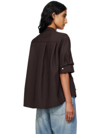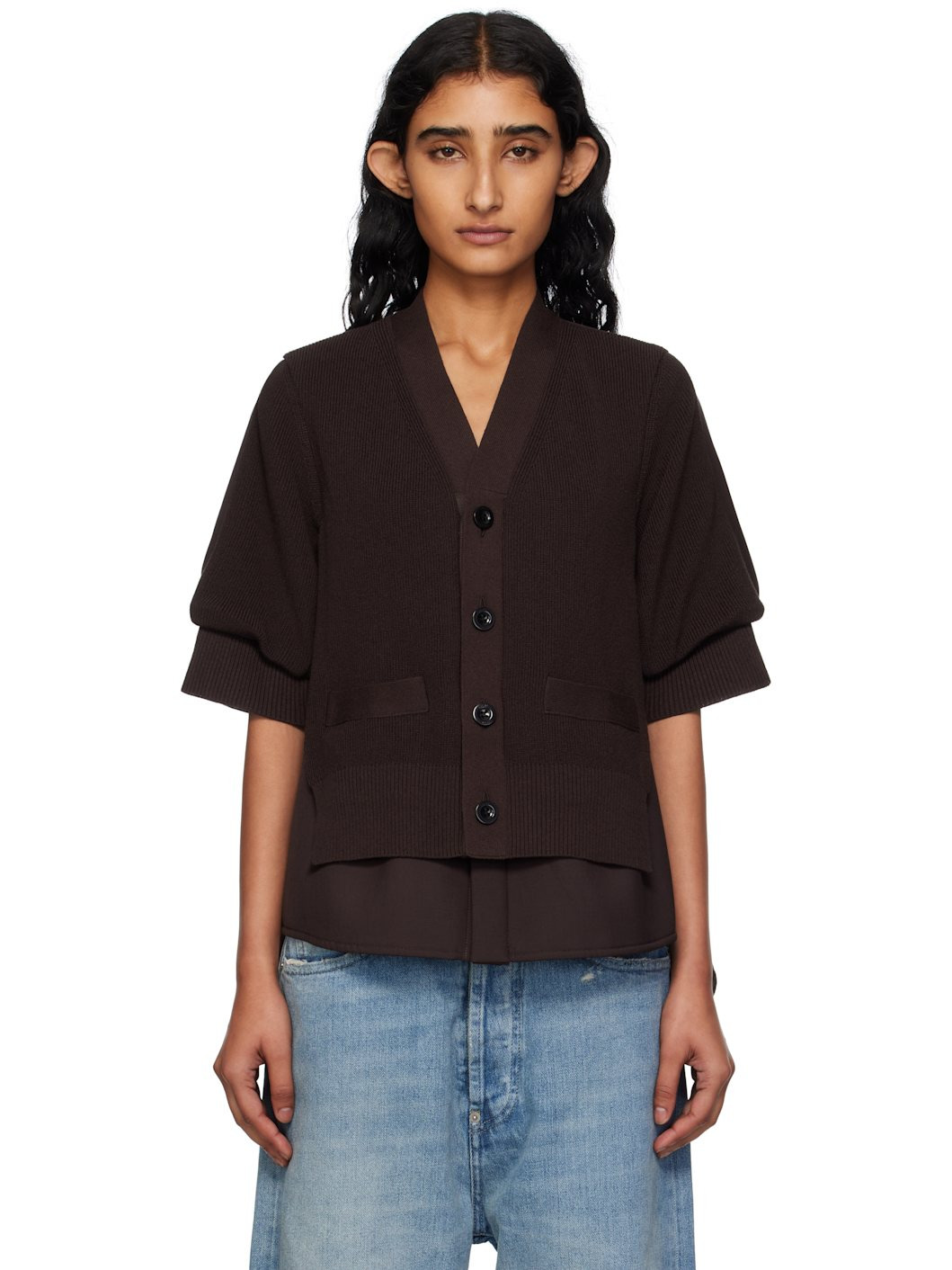 Knit cotton-blend and wool-blend bonded jersey cardigan. · Paneled and layered construction · Y-neck · Button closure · Welt pockets at waist · Rib-knit trim at hem and cuffs · Buttoned cuffs · Knife pleats and box pleats at back yoke · Partial mesh lining Supplier color: Brown Body 1: 57% cotton, 43% polyester. Body 2: 70% polyester, 30% wool. Trim: 100% polyester. Lining: 100% polyester. Made in Japan 252445F095001