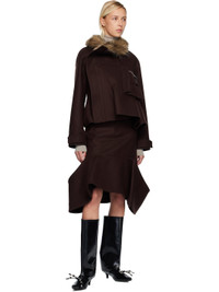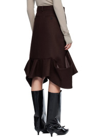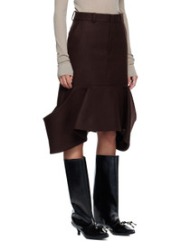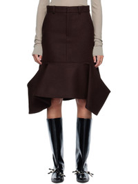 Wool melton midi skirt. · Belt loops · Four-pocket styling · Zip fly · Patch pockets at draped hem Supplier color: Brown Body: 100% wool. Lining: 100% cupro. Made in Japan 252445F092003