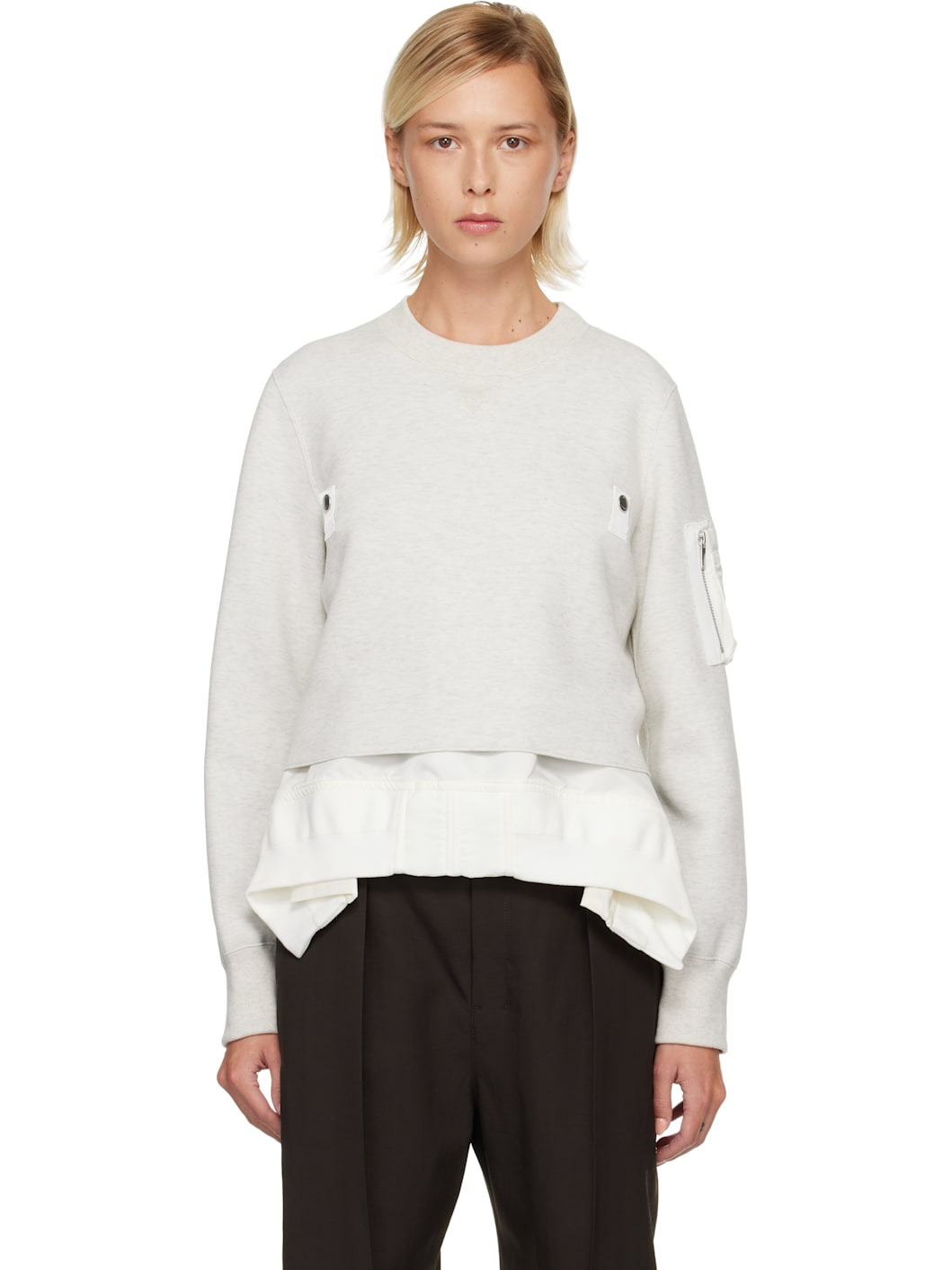 Gray & White Sponge Sweat & Nylon Twill Sweatshirt