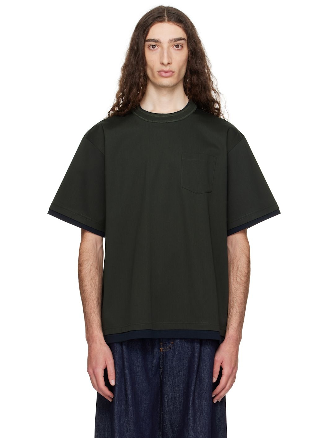 Cotton jersey T-shirt. · Layered rib-knit crewneck · Patch pocket at chest · Layered hem and cuffs Supplier color: Green/Navy 100% cotton. Made in Japan 252445M213034